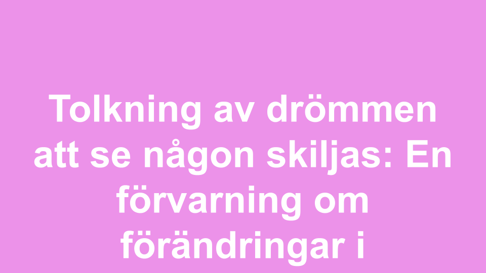 Har du någonsin drömt om att se någon skilja sig? Det kan kännas både konstigt och oroande. Drömmar är ofta en spegel av våra inre tankar och känslor, och att se en skilsmässa i en dröm kan faktiskt ha djupare betydelser. I den här bloggen kommer vi att utforska vad det kan betyda och hur det kan relatera till förändringar i våra relationer.