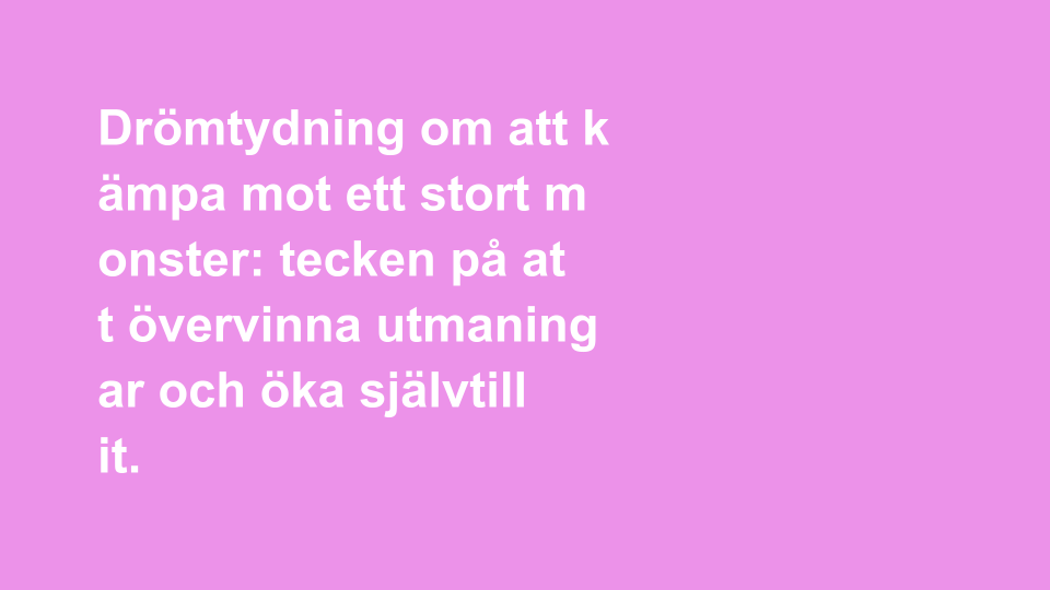 Har du någonsin drömt om att kämpa mot ett enormt monster? Det kan kännas skrämmande, men dessa drömmar bär ofta på djupa betydelser. De kan faktiskt vara tecken på att du står inför stora utmaningar i ditt liv, eller att du är på väg att övervinna något som har hållit dig tillbaka.